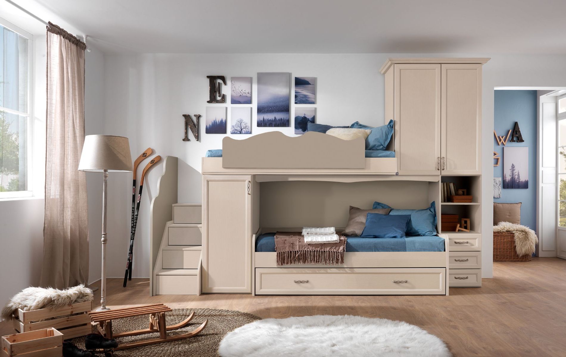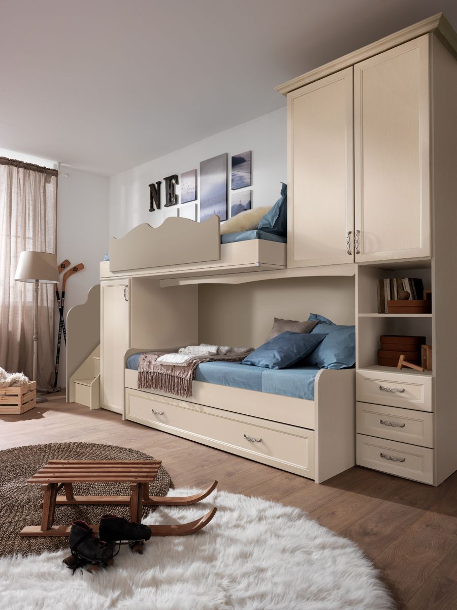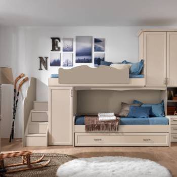 Nelle nostre camerette classiche per ragazzi si fondono classe e funzionalità, creando un ambiente che rispecchi la loro personalità e soddisfi le esigenze quotidiane. Con arredi dal design intramontabile e soluzioni efficienti, ogni spazio è pensato per garantire comfort e organizzazione. Zone studio accoglienti, aree dedicate al relax e mobili spaziosi ben organizzati rendono la cameretta il luogo ideale per coltivare passioni e vivere ogni momento con stile in un ambiente armonioso e accattivante.