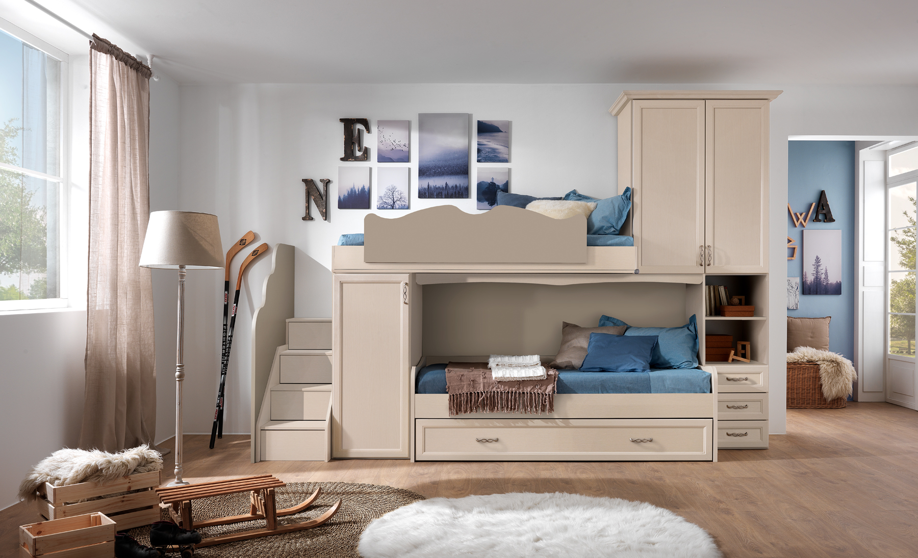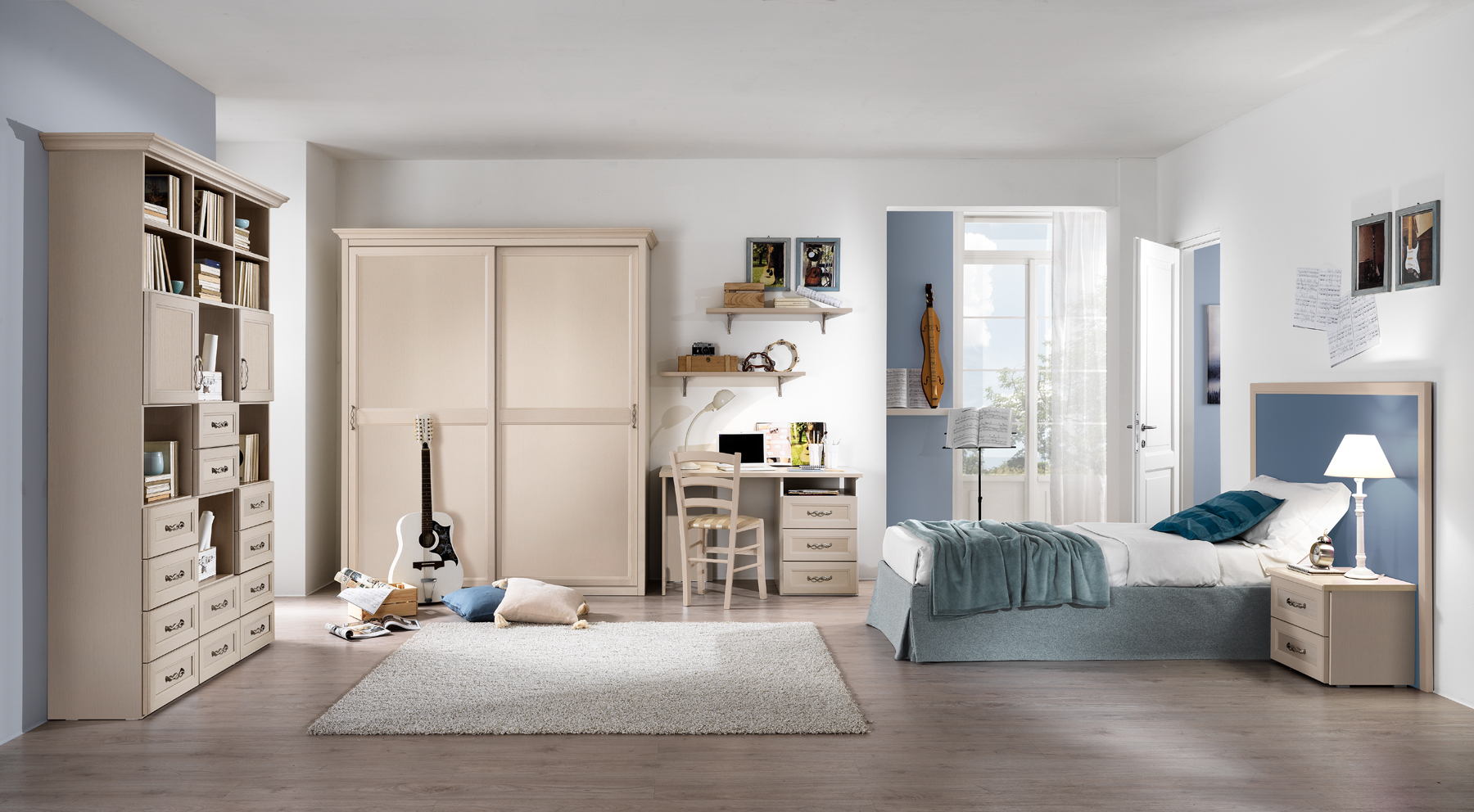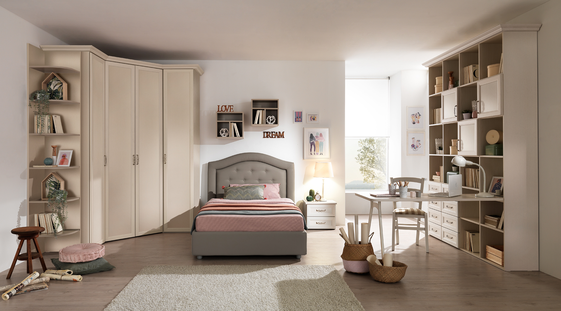 Nelle nostre camerette classiche per ragazzi si fondono classe e funzionalità, creando un ambiente che rispecchi la loro personalità e soddisfi le esigenze quotidiane. Con arredi dal design intramontabile e soluzioni efficienti, ogni spazio è pensato per garantire comfort e organizzazione. Zone studio accoglienti, aree dedicate al relax e mobili spaziosi ben organizzati rendono la cameretta il luogo ideale per coltivare passioni e vivere ogni momento con stile in un ambiente armonioso e accattivante.