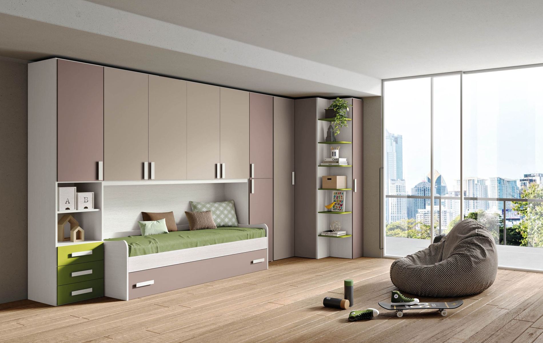Le camerette per ragazzi sono pensate per offrire un ambiente che rispecchi la loro personalità e soddisfi le esigenze quotidiane. Con soluzioni moderne e versatili, ogni stanza è progettata per essere funzionale e pratica, con aree dedicate allo studio, al relax e al tempo libero. Arredi funzionali e ben organizzati creano l’ambiente ideale per ogni attività. Che si tratti di riporre oggetti o di coltivare le proprie passioni, ogni angolo è studiato per ottimizzare l'uso degli spazi e garantire il massimo del comfort. Un ambiente perfetto per esprimersi e vivere ogni momento con stile.