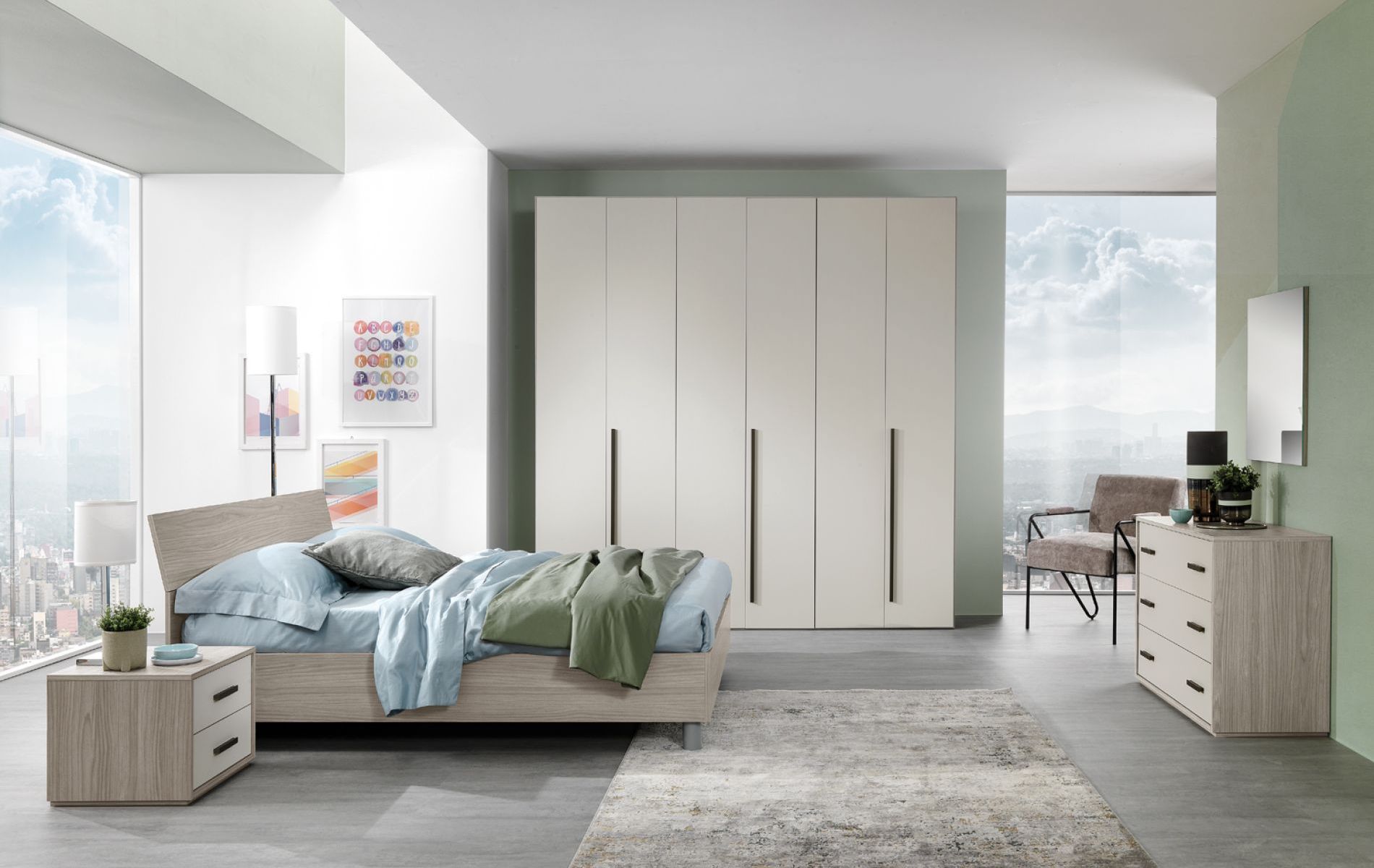 Armonia delle forme e design contemporanei caratterizzano le nostre camere matrimoniali moderne. Colori attuali, linee pulite e funzionali creano un ambiente accogliente e raffinato, dove l'eleganza si fonde con la praticità. Ogni elemento è pensato per ottimizzare lo spazio, senza rinunciare allo stile.