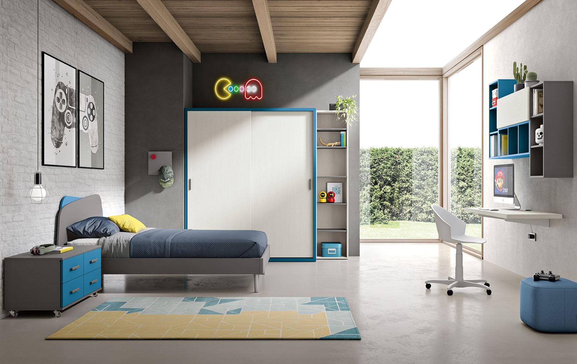Le camerette nostre per adolescenti sono ideate per adattarsi alla loro crescita e al loro bisogno di indipendenza. Con un design contemporaneo e funzionale, ogni spazio combina estetica e praticità. Spazi studio ben attrezzati, armadi ampi e soluzioni versatili per offrire comfort e soddisfare le esigenze di organizzazione. Un ambiente che permette ai ragazzi di esprimere la propria personalità, favorendo un'atmosfera rilassante e stimolante che li accompagna nel loro percorso di crescita e scoperta.