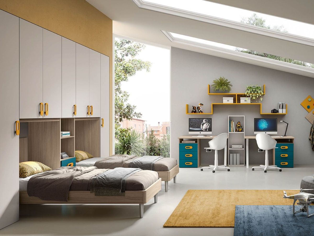 Le camerette nostre per adolescenti sono ideate per adattarsi alla loro crescita e al loro bisogno di indipendenza. Con un design contemporaneo e funzionale, ogni spazio combina estetica e praticità. Spazi studio ben attrezzati, armadi ampi e soluzioni versatili per offrire comfort e soddisfare le esigenze di organizzazione. Un ambiente che permette ai ragazzi di esprimere la propria personalità, favorendo un'atmosfera rilassante e stimolante che li accompagna nel loro percorso di crescita e scoperta.